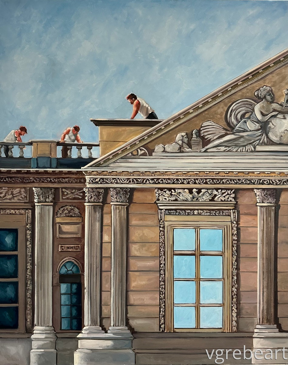 It was a "I've got to paint that!" moment. Here it is, Gardiens of The Louvre. They are her guardians and caretakers.