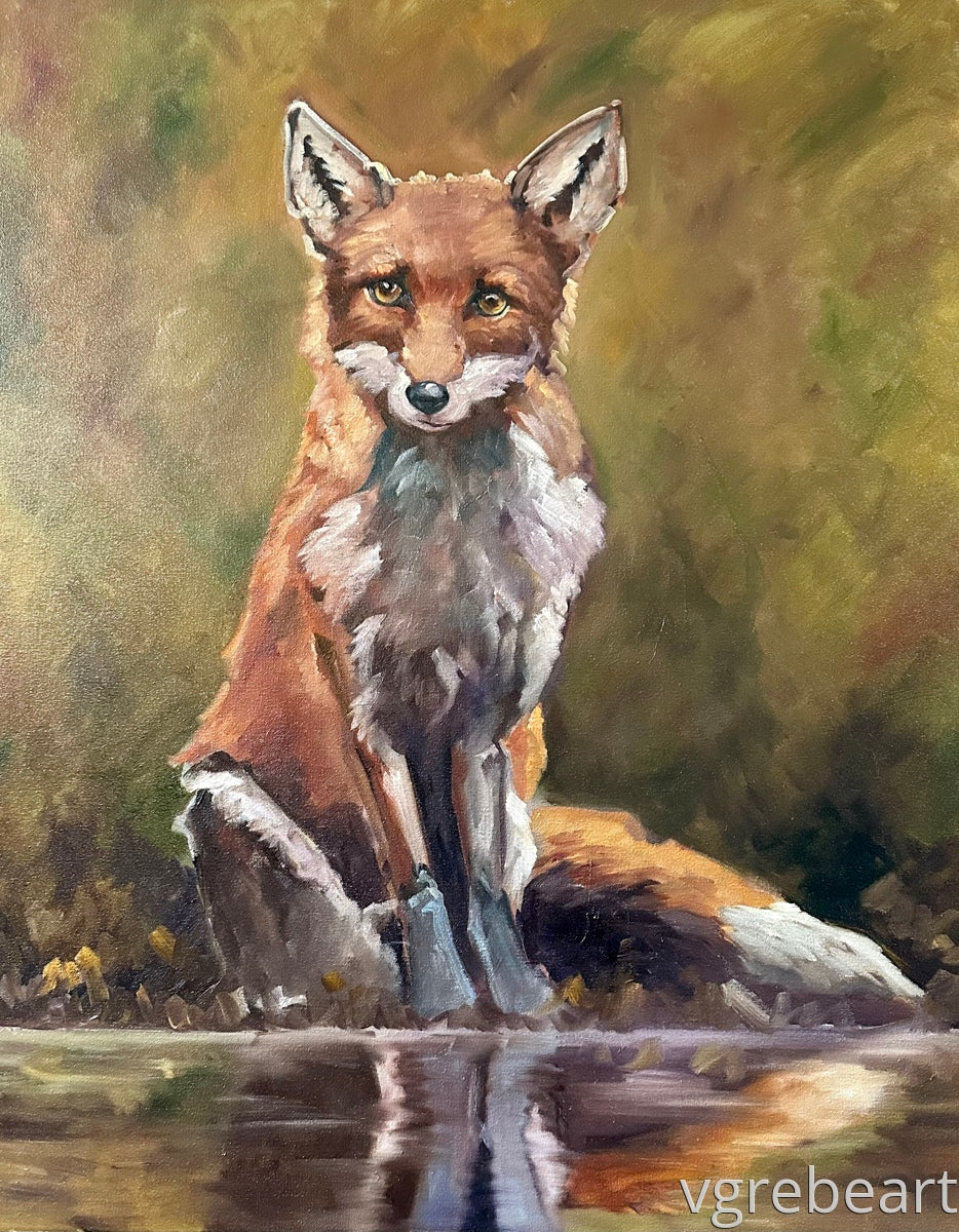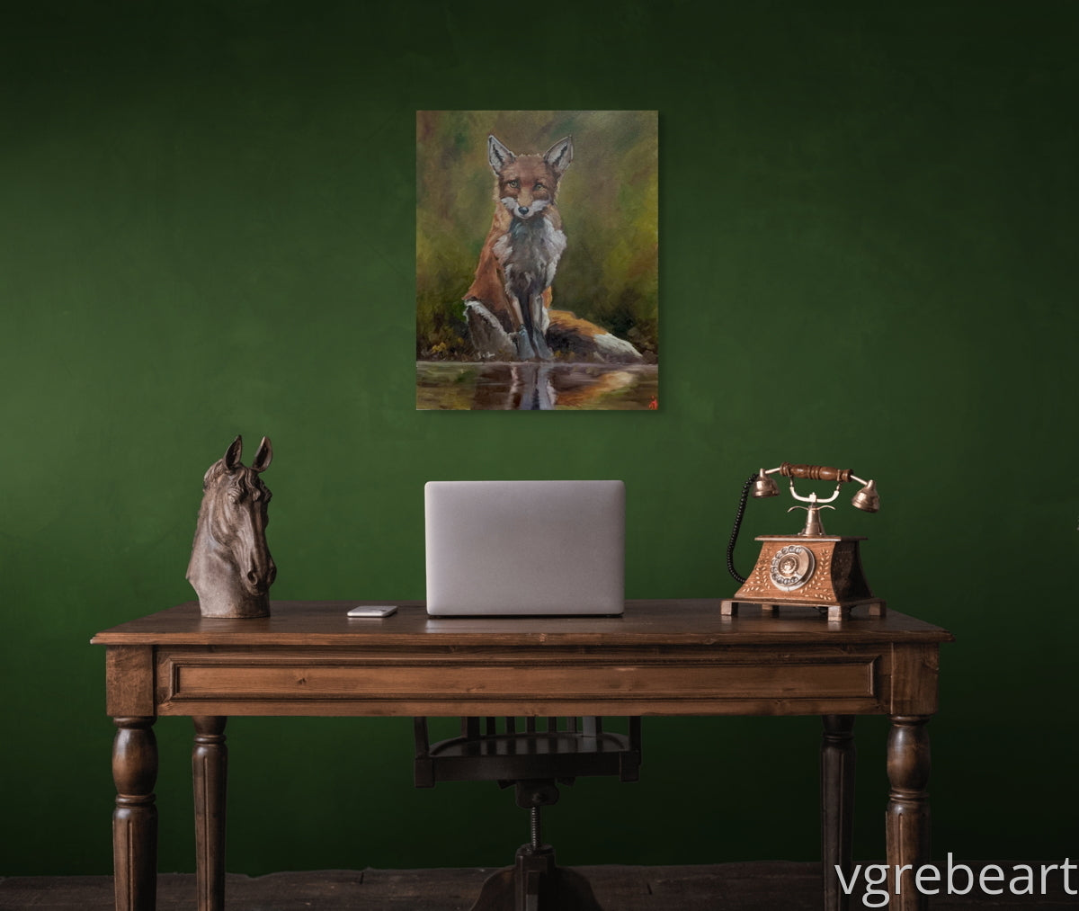 The sweetest little fox pausing by a still pool of water, lost in thought for a moment perhaps?