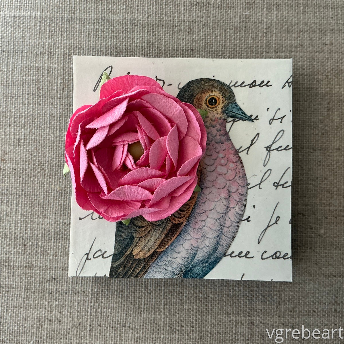 Simple. A beautiful bird and a beautiful flower. Sitting atop a French letter.
