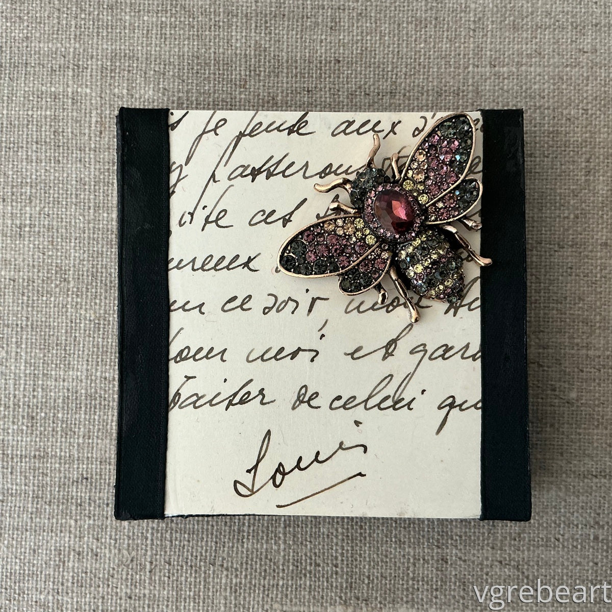 A vintage love letter from Louis…or from you? A dazzling bee glides across the letter in swoops of love.